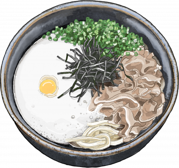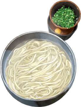 冷たい麺に生たまごのうどん。だししょうゆをかけて食べる。
