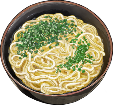 かけうどん。だしと刻み葱だけでシンプルに食べる。