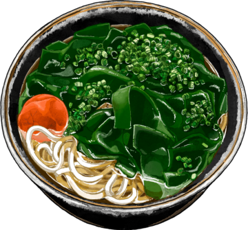 わかめたっぷりのうどん。わかめは岩手県ひろた湾産の最高品。