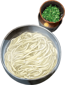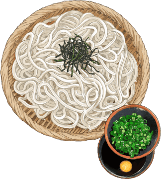 氷水をはった冷たいうどん。一緒に出されるつゆに付けて食べる。