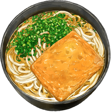 きつねうどん。大判のおあげは、とってもジューシーで豊かな味。