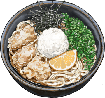 粗めの大根おろしと刻み海苔、たっぷりの刻みネギがのったうどん。